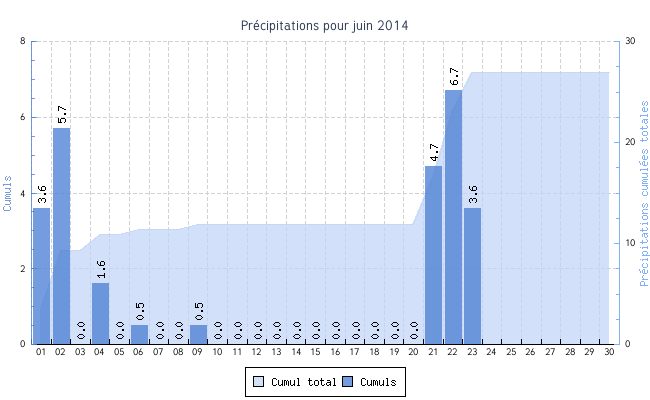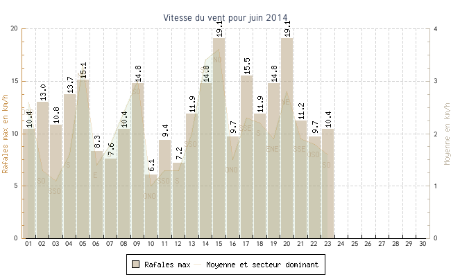 | 17 | 14.2 °C | 23.8 °C | 18.7 °C | 2.3 km/h (15.5 km/h) | SSE |